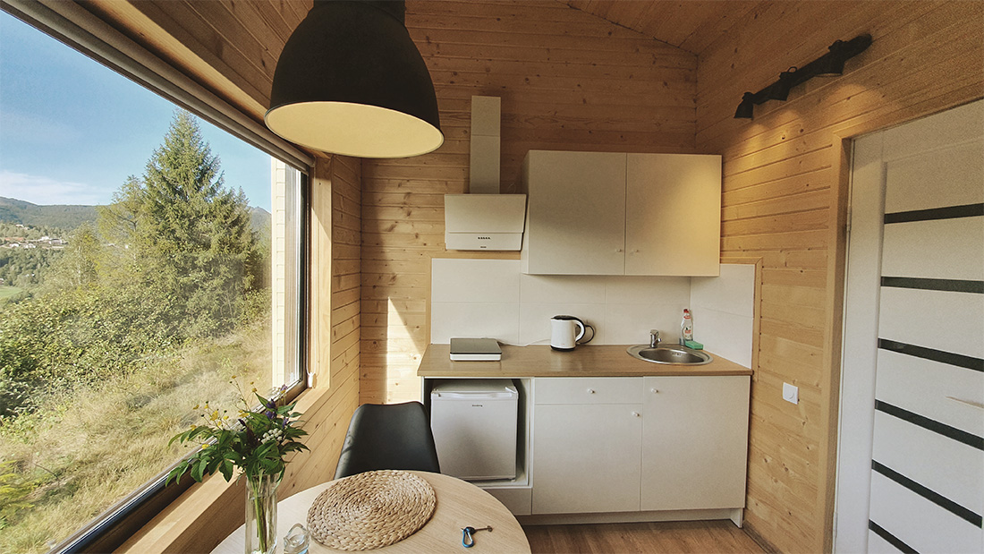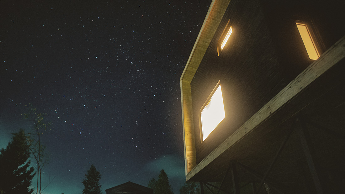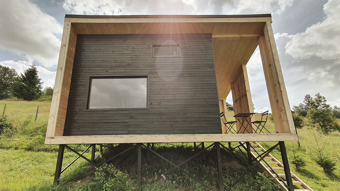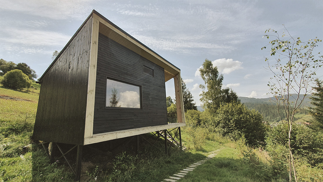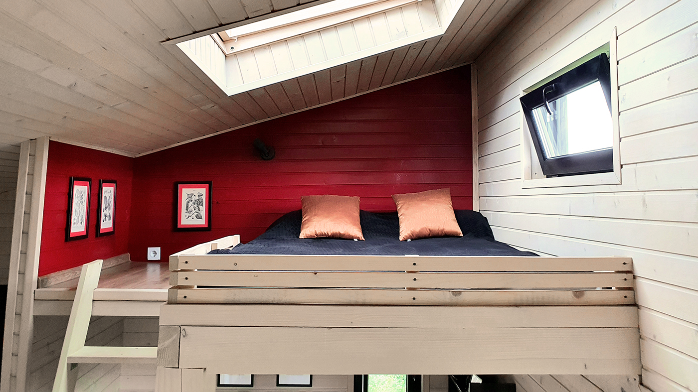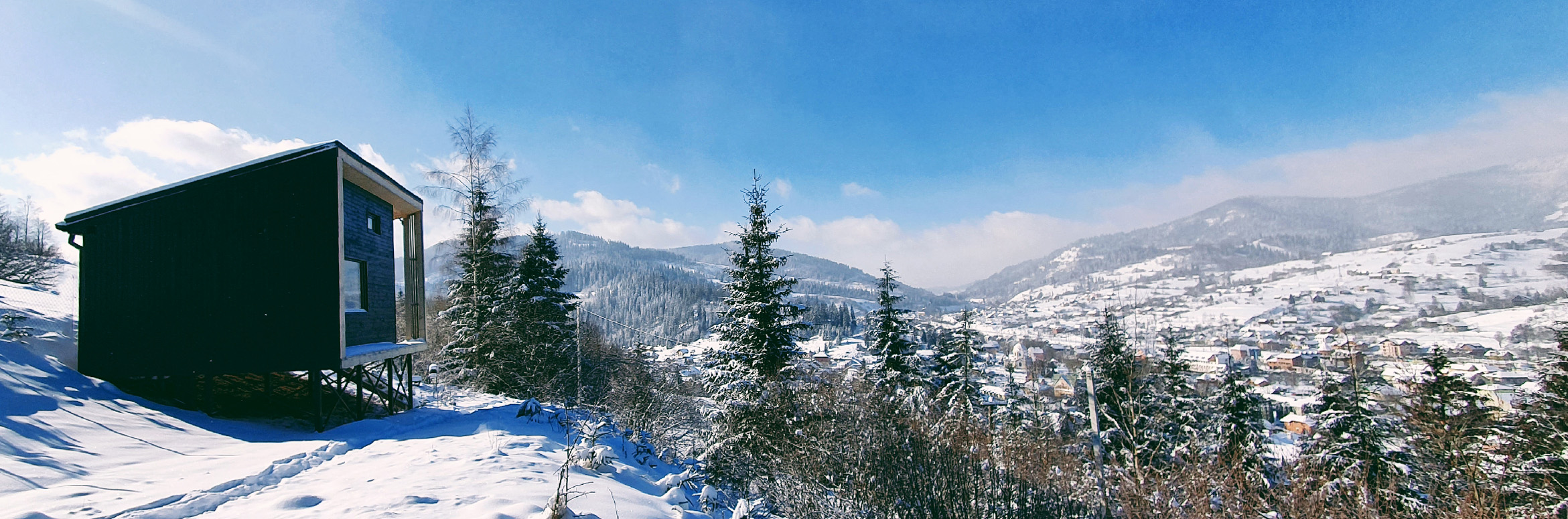 Сучасний мікрокотедж із великим панорамним вікном, спальнею на антресолі та мансардним вікном над ліжком. Зоряне небо у вас перед очима прямо з подушки. Вміщає до трьох гостей
