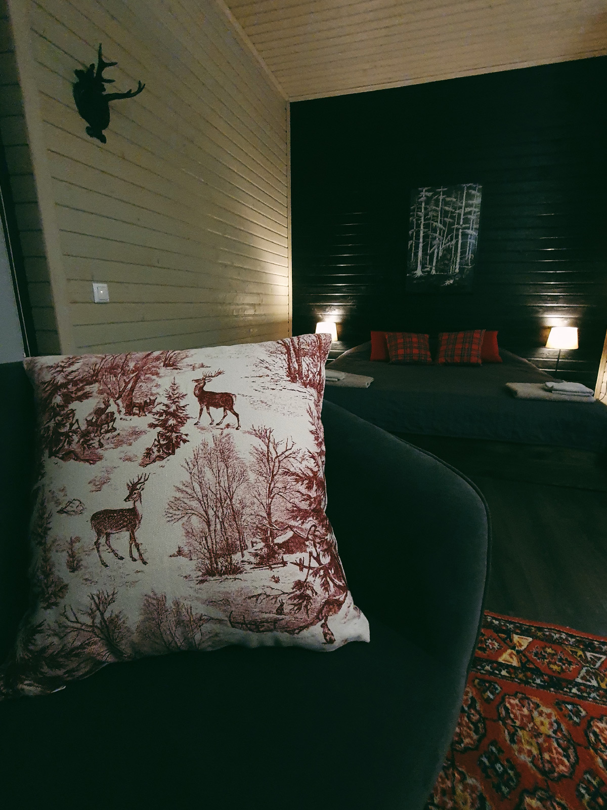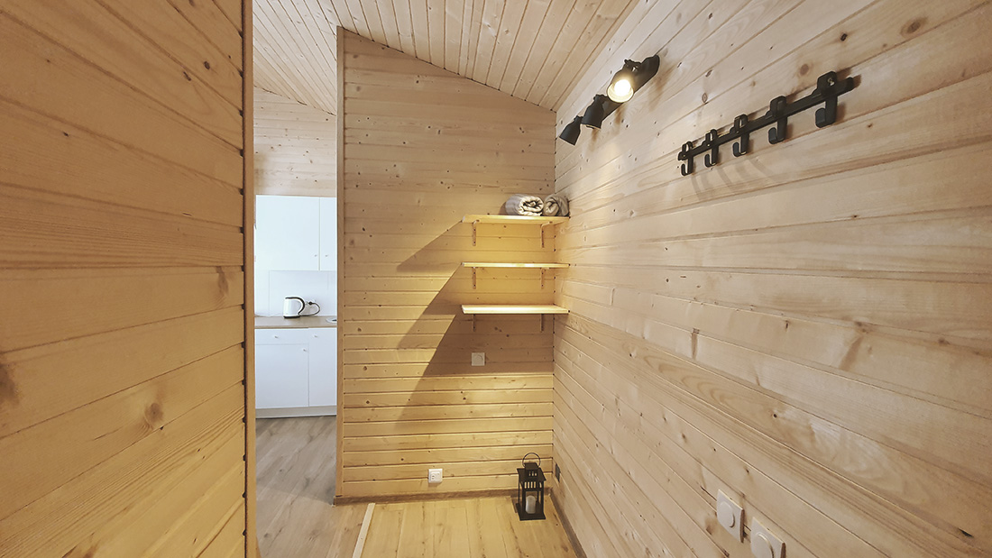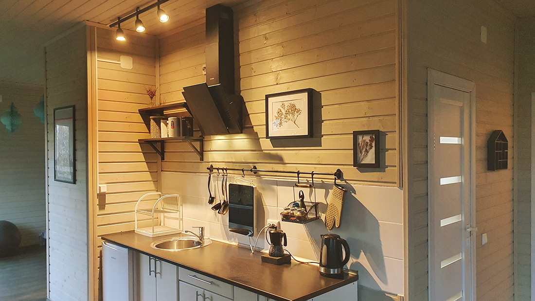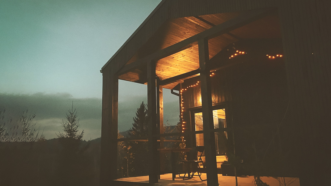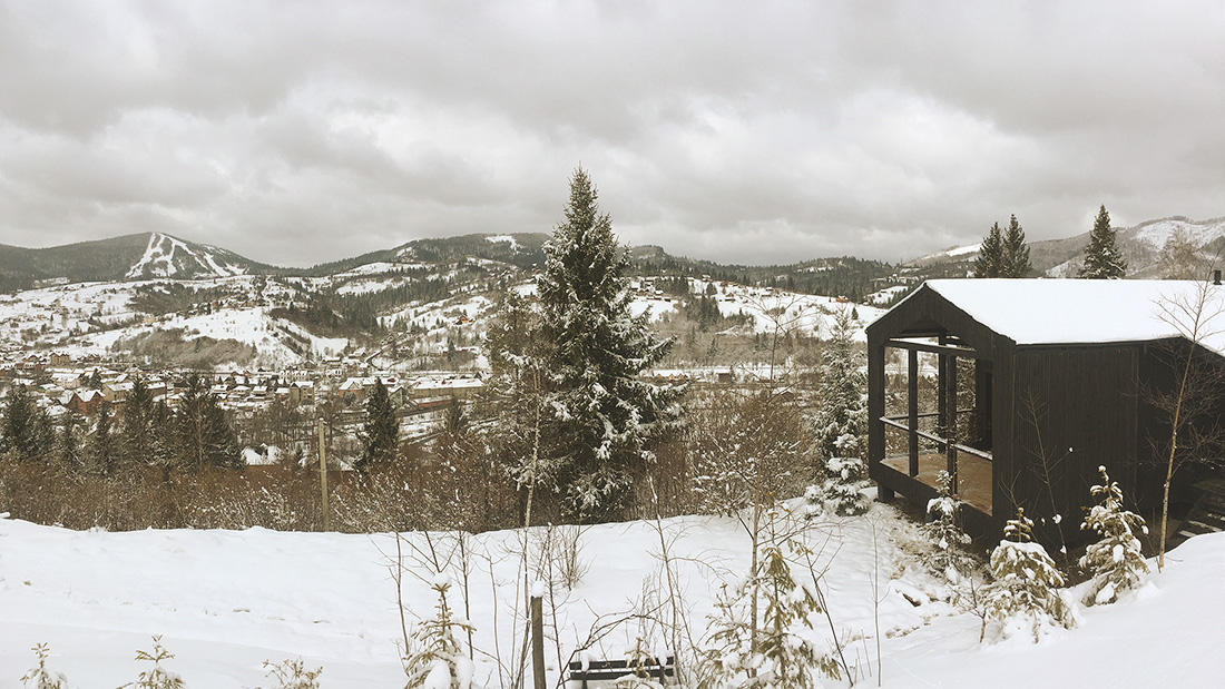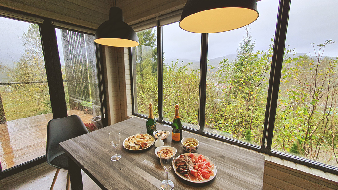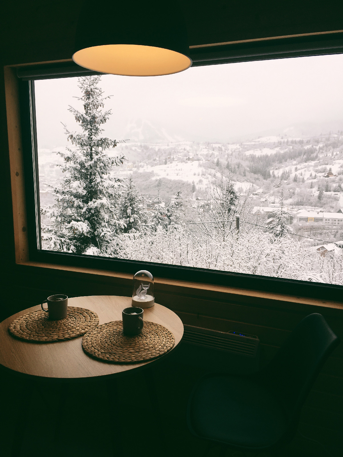 Наш перший більший котедж із величезними вікнами та просторою терасою, який розрахований на двох гостей. Багато книжок, зручні крісла, тепле освітлення. Уявіть себе з келихом вина в цій атмосфері... це кайф.